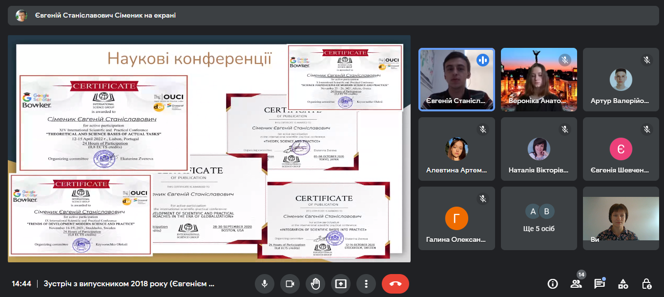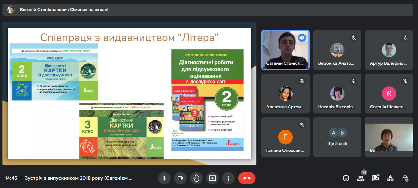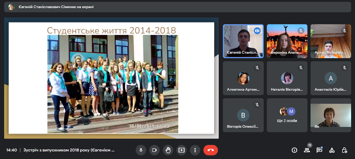 02.11.2022 року студенти групи 11ПО мали змогу поспілкуватися з випускником 2018 року спеціальності «Початкова освіта» Сімеником Євгенієм. Під час зустрічі Євгеній Станіславович розповів про свій педагогічний шлях від вчителя інформатики до замісника директора з навчально-виховної роботи. Студенти отримали поради як досягнути швидкого успіху та ознайомилися з методичними розробками та посібниками для учнів початкової школи розроблені Сімеником Євгенієм Станіславовичем.