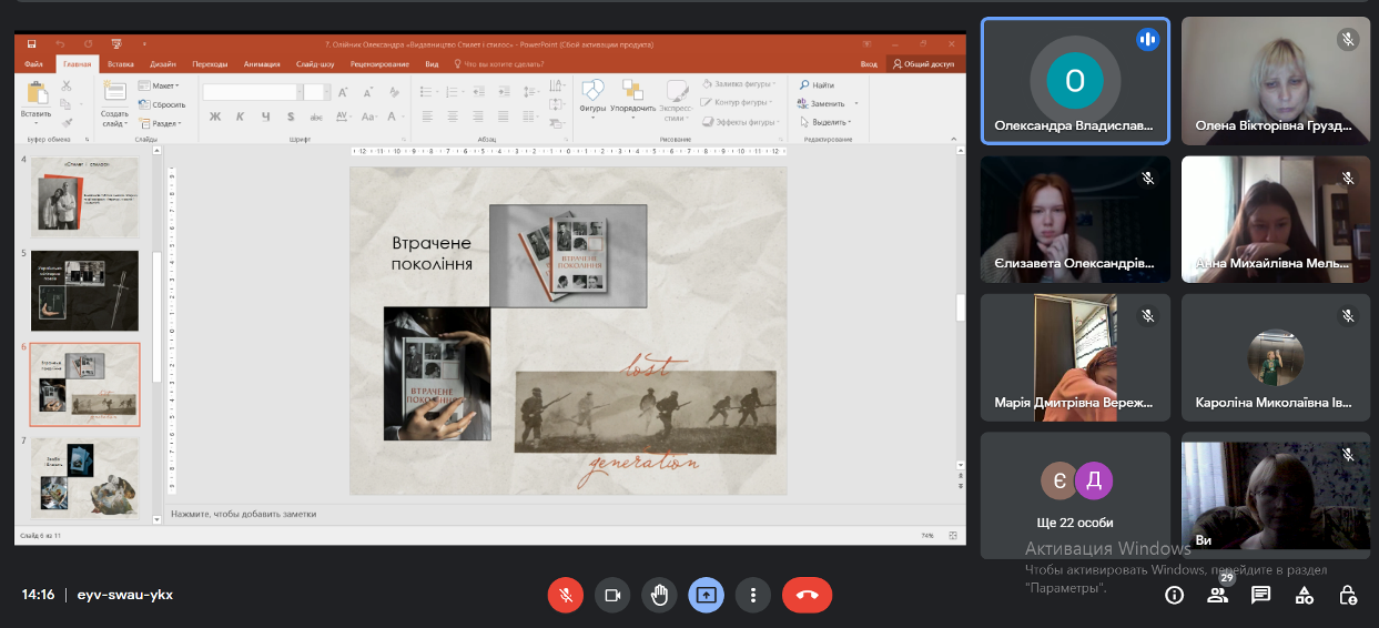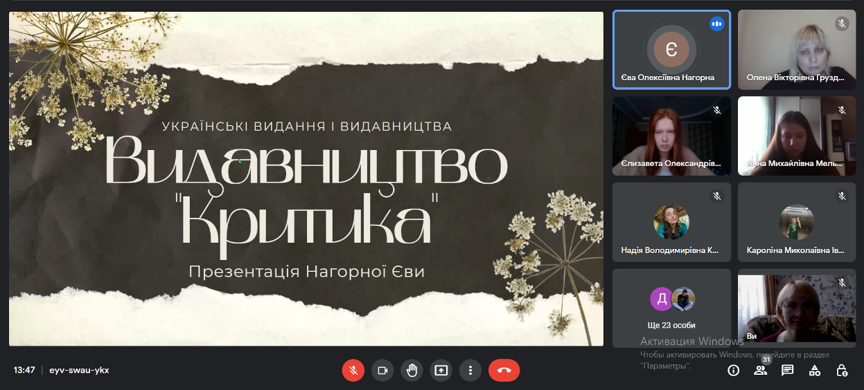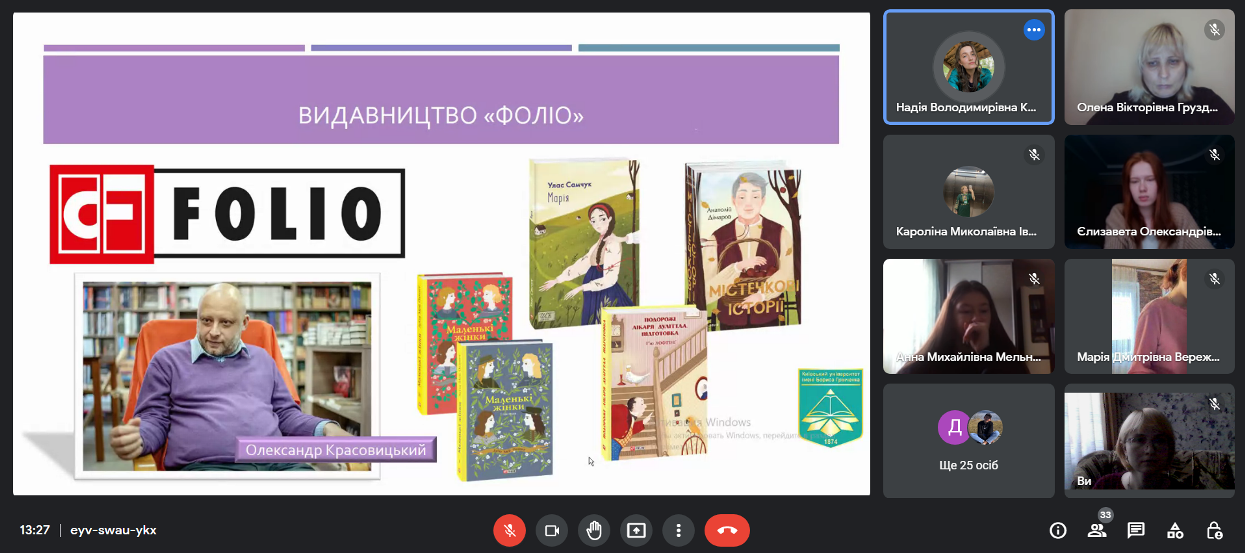 11.11.22 р. у Фаховому коледжі «Універсум» Київського університету імені Бориса Грінченка, у рамках декади циклової комісії з видавничої справи, культури та української філології, для студентів груп ВСфмб-1-21-4.0д., ВСфмб-1-20-4.0д., ВСмс-1-19-4.0д. відбувся воркшоп «Українські видання і видавництва».
