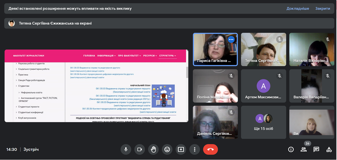 Під час зустрічі Лариса Гагіківна презентувала освітню програму «Видавнича справа та редагування», розповіла про перспективи подальшого навчання в Університеті на бакалаврському та магістерському рівнях. Тетяна Сергіївна ознайомила з дисциплінами вільного вибору, які можна вивчати за даною освітньою програмою. Студенти отримали ґрунтовні відповіді на всі поставлені запитання.