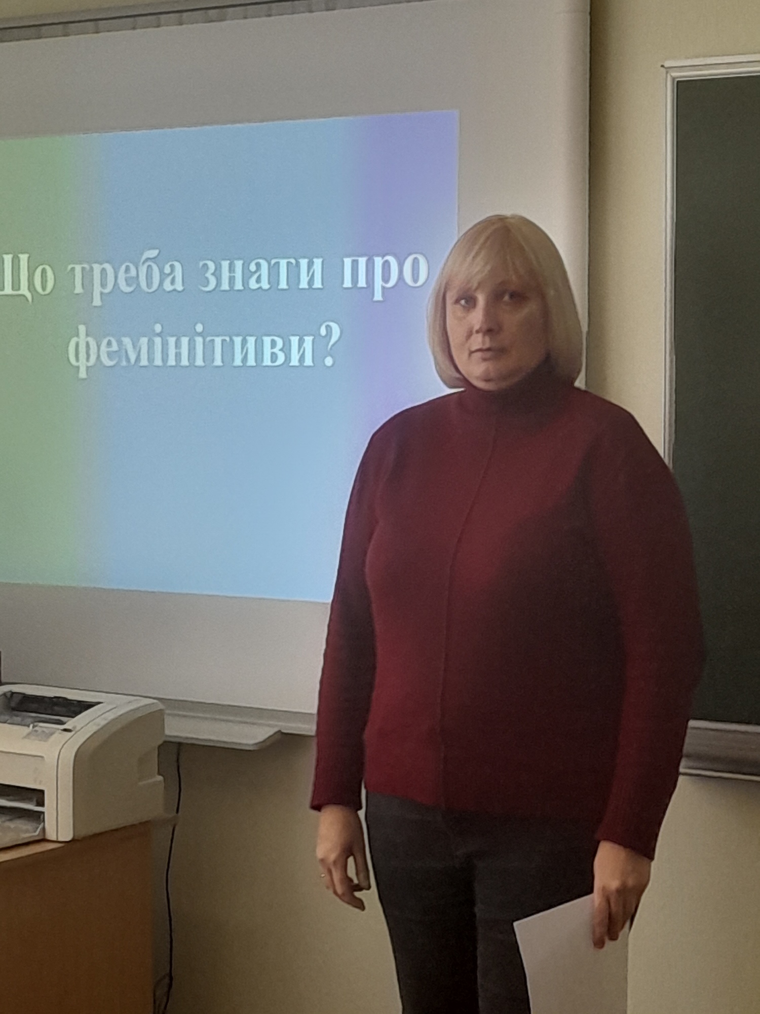 23.10.2023 року у Фаховому коледжі «Універсум» у межах декади циклової комісії видавничої справи, культури та української філології відбувся вебінар на тему «Що треба знати про фемінітиви?» для студентів спеціальності «Журналістика» (онлайн), викладачів та студентів спеціальностей «Соціальна робота», «Хореографія» (офлайн). Учасники вебінару розглянули історію походження фемінітивів від часів Київської Русі до сьогодення, основні види документів, що пояснюють вживання фемінітивів в українській мові: нова редакція правопису української мови, 2019, Стратегія впровадження гендерної рівності у сфері освіти до 2030 року та затвердження операційного плану заходів на 2022—2024 роки з її реалізації (Розпорядження від 20 грудня 2022 р. No 1163-р), Національний стандарт ДСТУ 4163:2020 «Державна уніфікована система документації. Уніфікована система організаційно-розпорядчої документації. Вимоги до оформлення документів». Ознайомилися з точкою зору щодо походження фемінітивів провідних науковців України: О. Пономаренка, М. Брус ін., з’ясували спосіб творення фемінітивів та спробували самостійно утворити слова жіночого роду на означення професій.