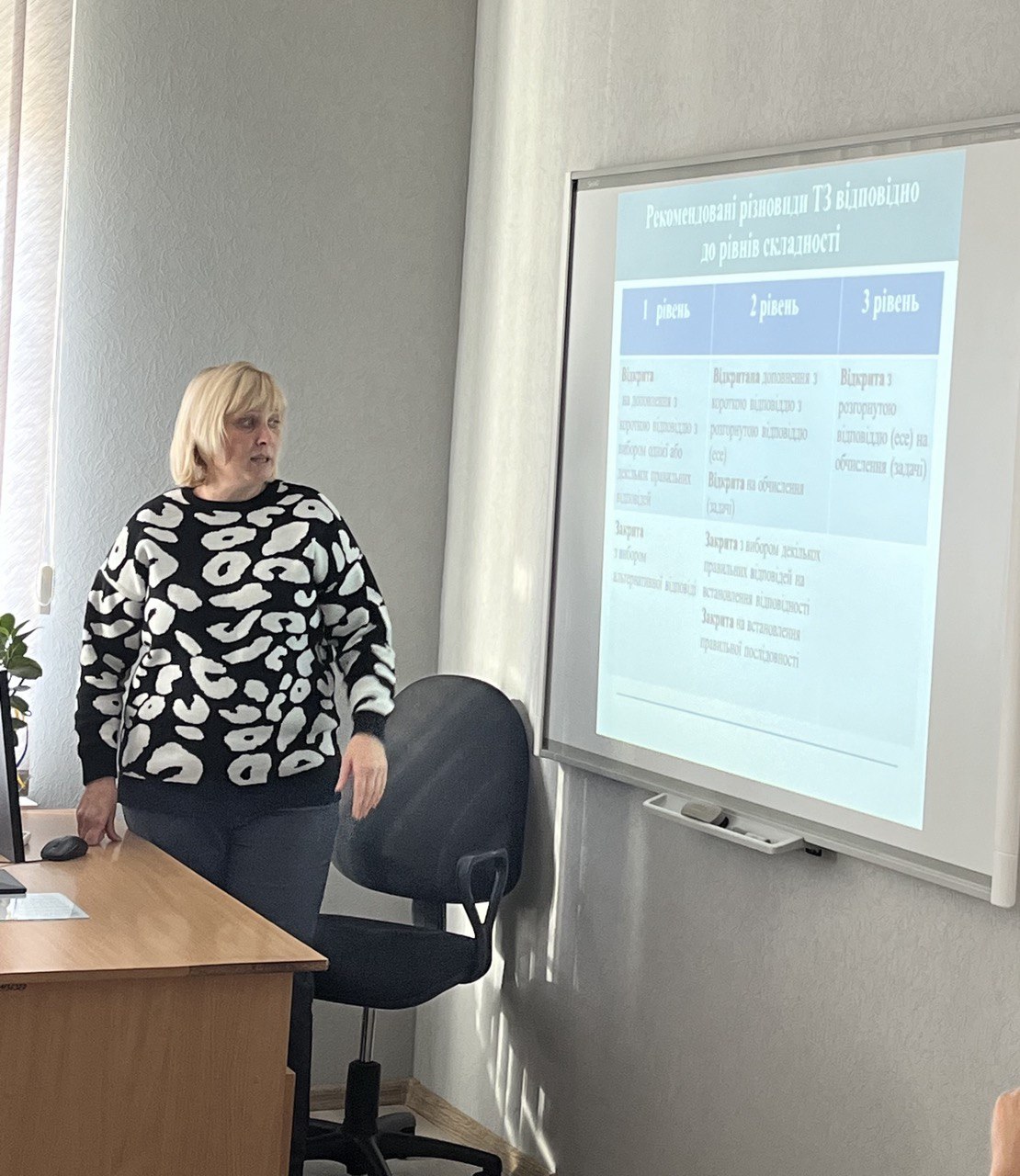 29 жовтня 2024 року викладачі циклової комісії з видавничої справи, культури та української філології Груздьова О. В. та Кашуба Н. В. провели методичний семінар зі створення різнорівневих тестових завдань для співробітників Фахового коледжу «Універсум» Київського столичного університету імені Бориса Грінченка. На семінарі розглядалися питання: методика розробки тестових завдань різного рівня складності; структурні вимоги до тестів; оцінювання завдань; використання цифрових інструментів для створення тестів. Учасники мали можливість самостійно створити різнорівневі тести та критерії оцінювання до них, використовуючи можливості штучного інтелекту. Семінар став важливим кроком для підвищення якості освіти та підготовки викладачів до створення ефективних тестових завдань, що відповідають сучасним вимогам.