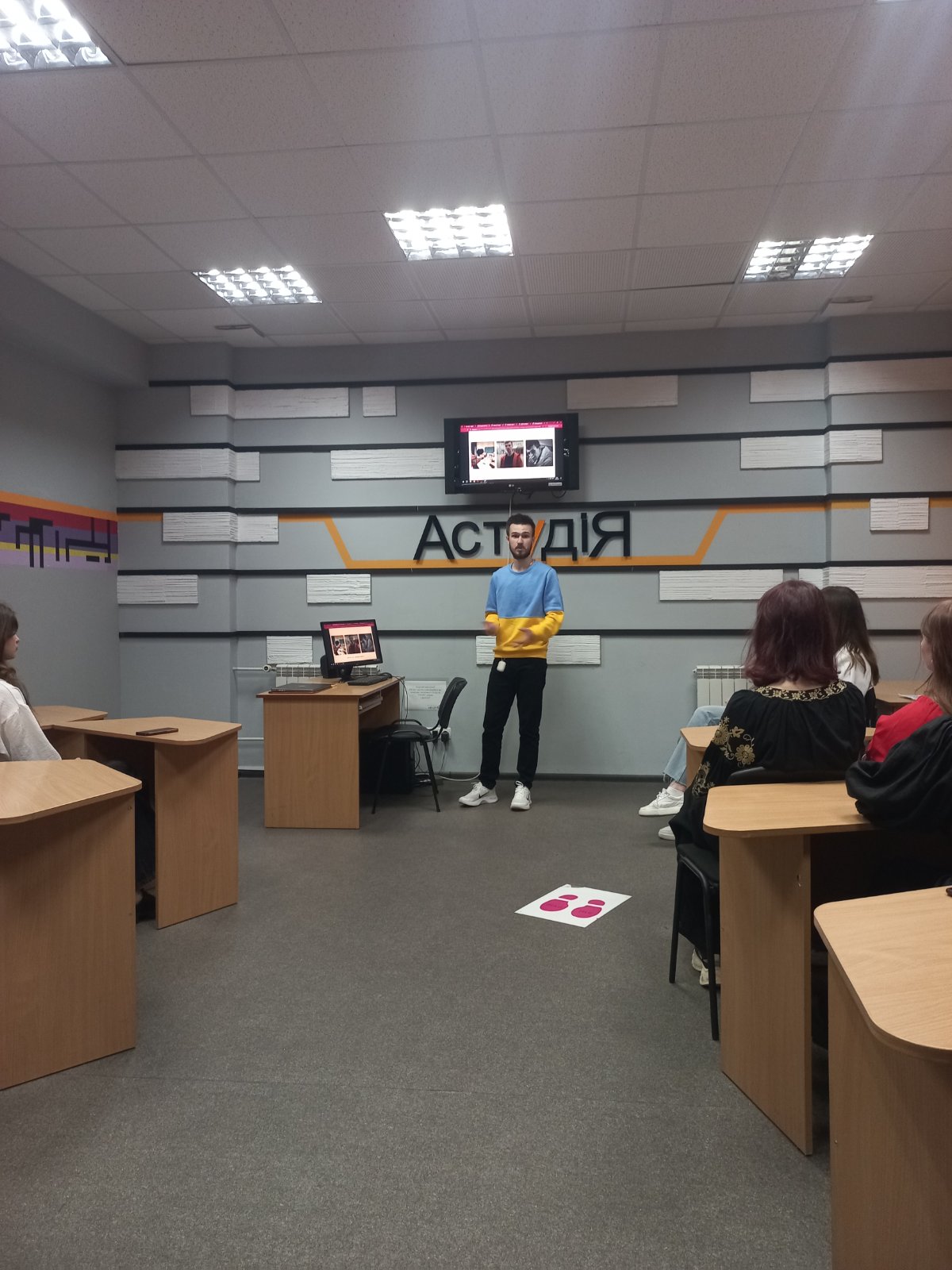 Завідувачка НВМ тележурналістики Мар’яна Ангелова розповіла про проєкти Астудії, роботу над фільмом «Не остання вишивка», в основу якого лягло відтворення вишиванки Бориса Грінченка за світлиною. Нині студенти використовують узори сорочки для створення шевронів. Шеврони, створені грінченківцями, відправляються на фронт захисникам Вітчизни.