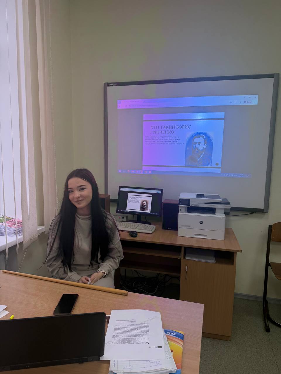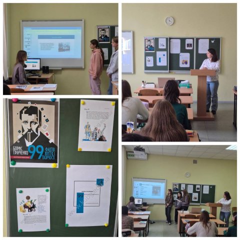 08.12.2025 р. у Фаховому коледжі «Універсум» з нагоди 162-ї річниці від дня народження Бориса Грінченка для студентів групи СРКфмб-1-25-3.0д, СОЗфмб-1-25-4.Од та викладачів була проведена інтерактивна подорож у світ фактів: «99 кроків до пізнання Бориса Грінченка».