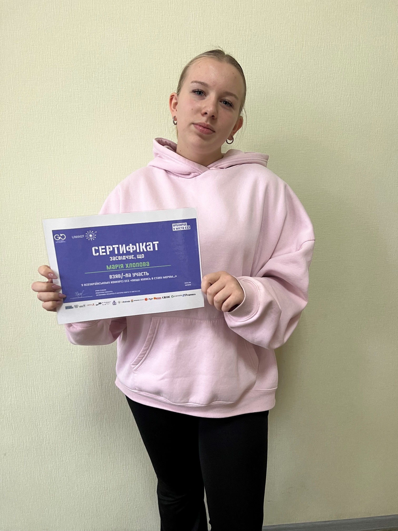 9 грудня 2025 року були оголошені результати Всеукраїнського конкурсу есе «Якщо колись я стану мером...». Студенти 1 та 2 курсу Фахового коледжу «Універсум» спеціальностей «Організація виробництва» (Поліщук Анастасія, Кузнецова Катерина) та "Початкова освіта" (Ященко Марія, Хлопова Марія), які з 15 жовтня до 15 листопада подали свої роботи на конкурс, який був ініційований неформальною освітньою програмою «Урбанрух "У міста є Я"». Мета конкурсу: стимулювання роздумів української молоді щодо потреб та викликів своїх населених пунктів, формулювання ідей та рішень підлітками. Студенти отримали сертифікати учасників. Дякуємо за долучення до конкурсу есе і небайдужість до життя Вашого міста, села чи громади.