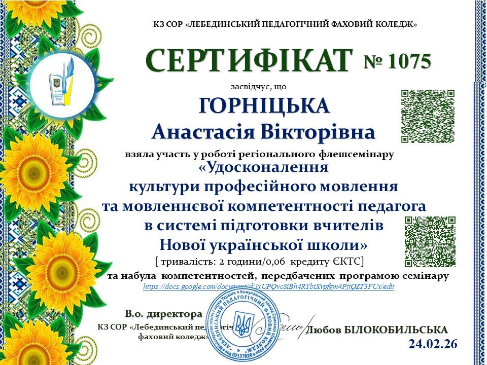 Учасники семінару висловлюють щиру вдячність організаторам семінару Комунальному закладу Сумської обласної ради «Лебединський педагогічний фаховий коледж».