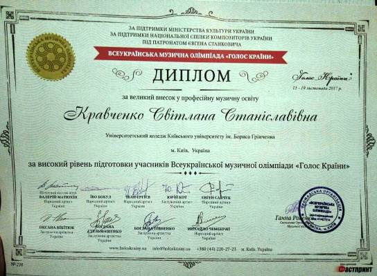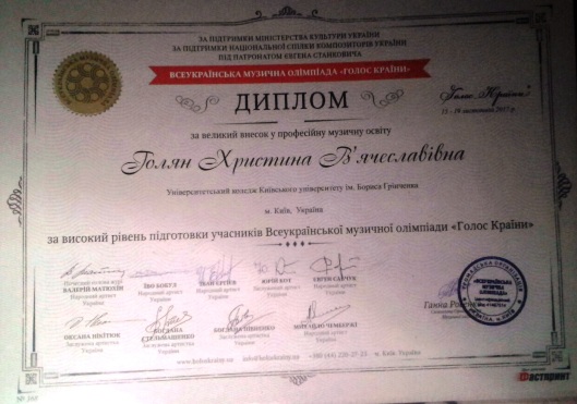 Вітаємо лауреатів XII Всеукраїнської музичної олімпіади «Голос Країни»