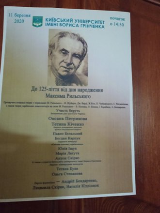 Захід до 125-ліття від дня народження Максима Рильського