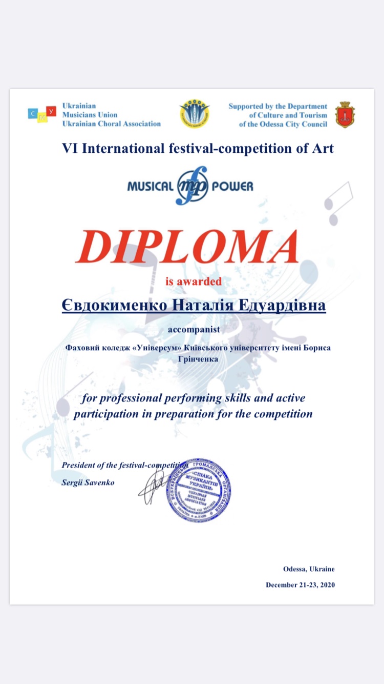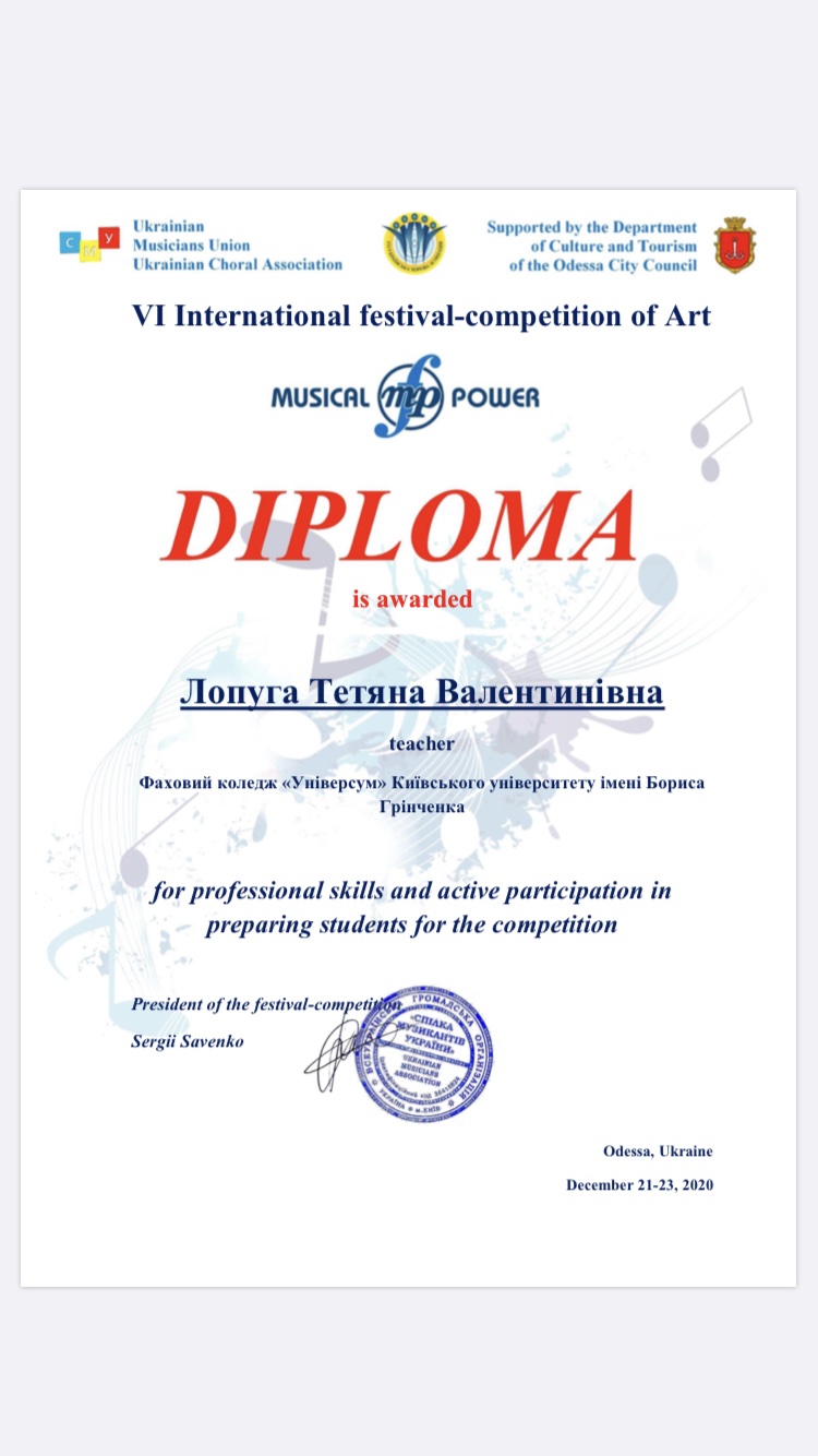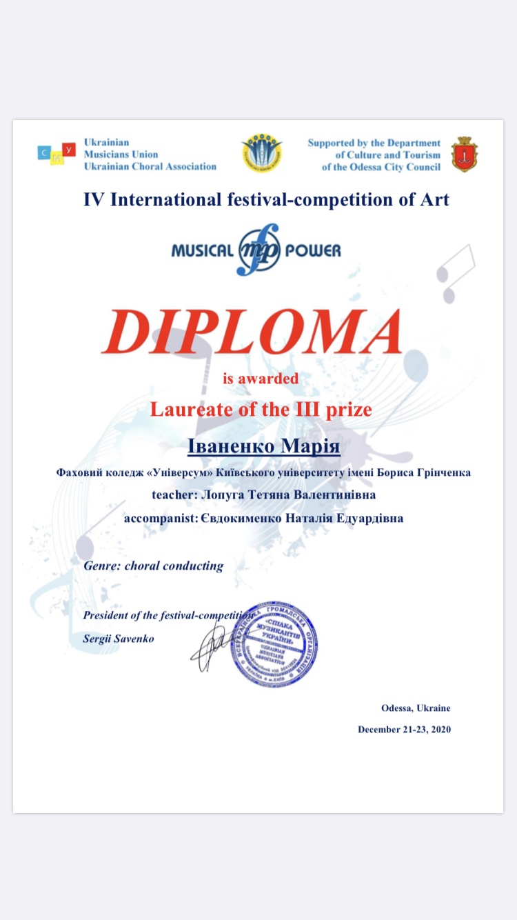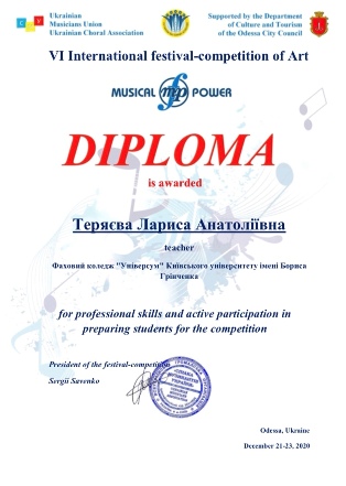 Вітаємо студентів спеціальності "Музичне мистецтво"