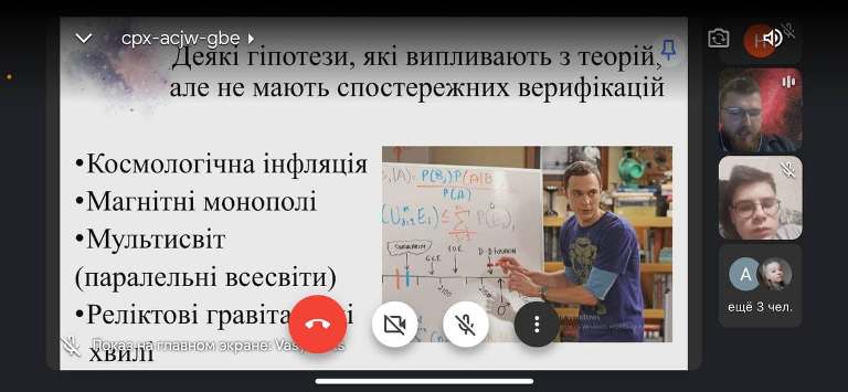 Засідання наукового гуртка «Стріла Часу» на тему «Наукові гіпотези походження Всесвіту»