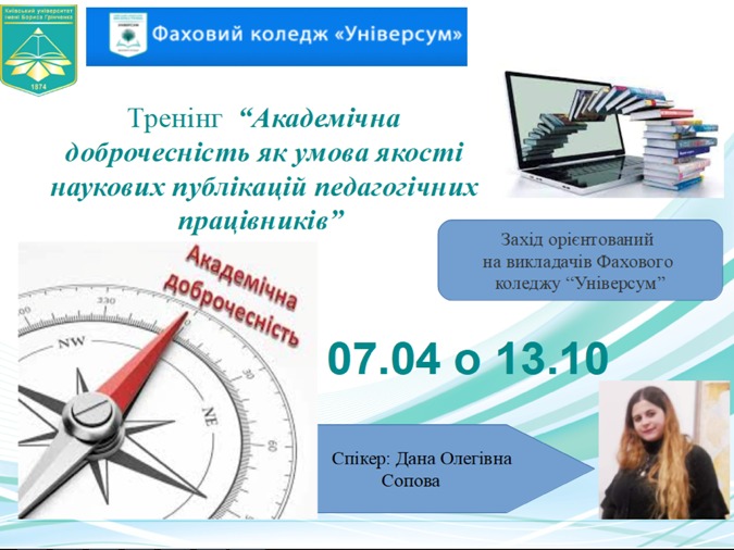 Тренінг "Академічна доброчесність як умова якості наукових публікацій педагогічних працівників"