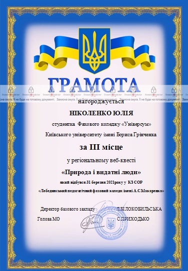 Анкета випускника Коледжу
