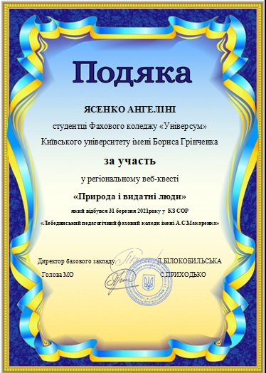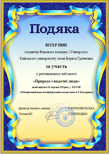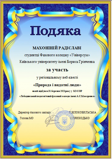 Вітаємо учасників регіонального веб-квесту «Природа і видатні люди»