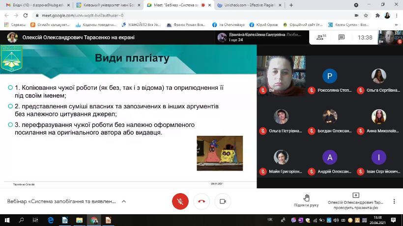 Участь у вебінарі "Система запобігання та виявлення академічного плагіату"