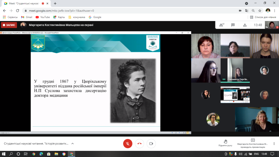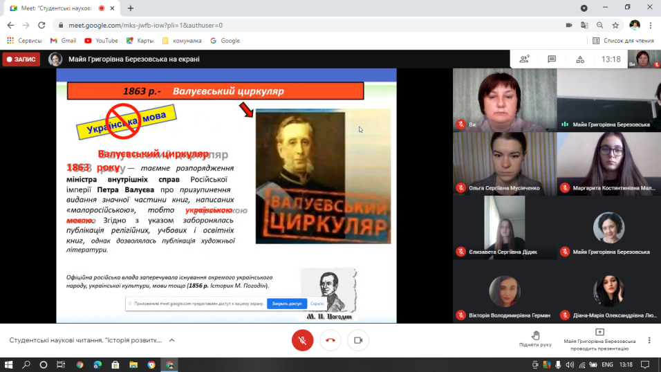 Студентські наукові читання "Історія розвитку освіти та науки в другій пол.19 ст."