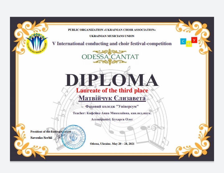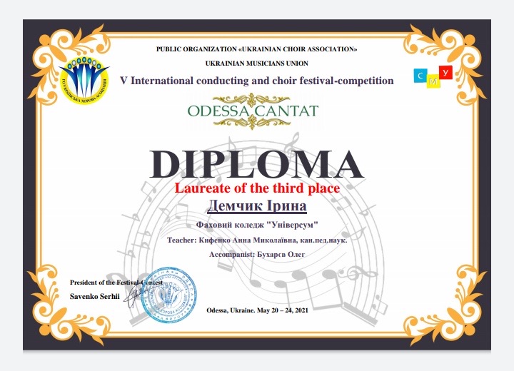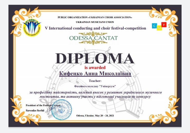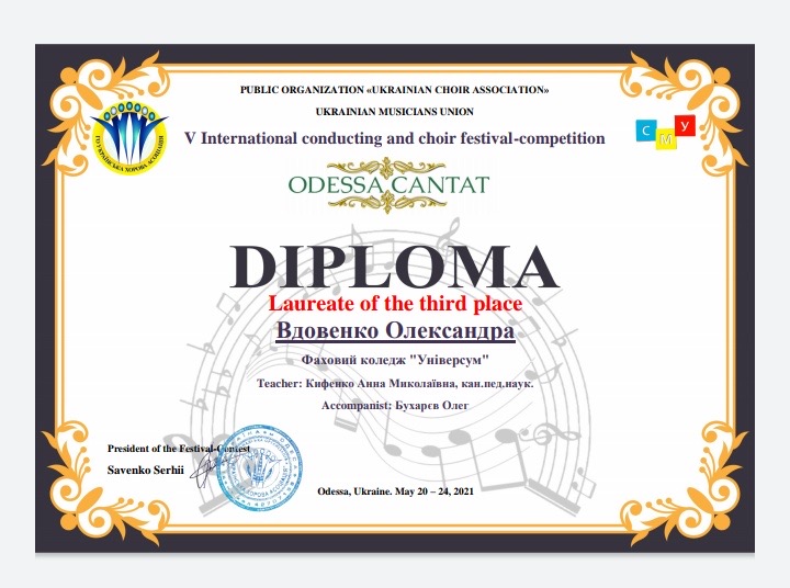 Вітаємо переможців V Міжнародного диригентсько-хорового фестивалю-конкурсу "ODESSA CANTAT"