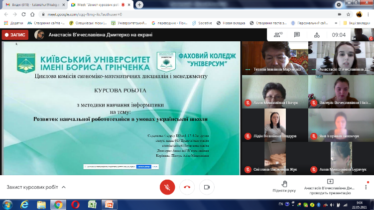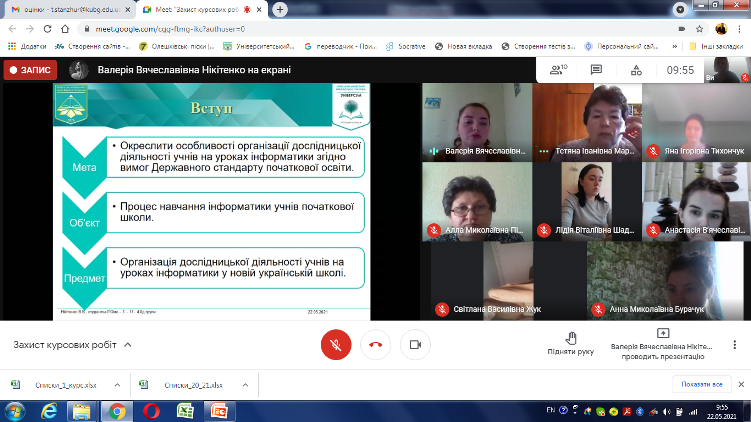 Захист курсових робіт студентами спеціальності "Початкова освіта" з методики навчання інформатики