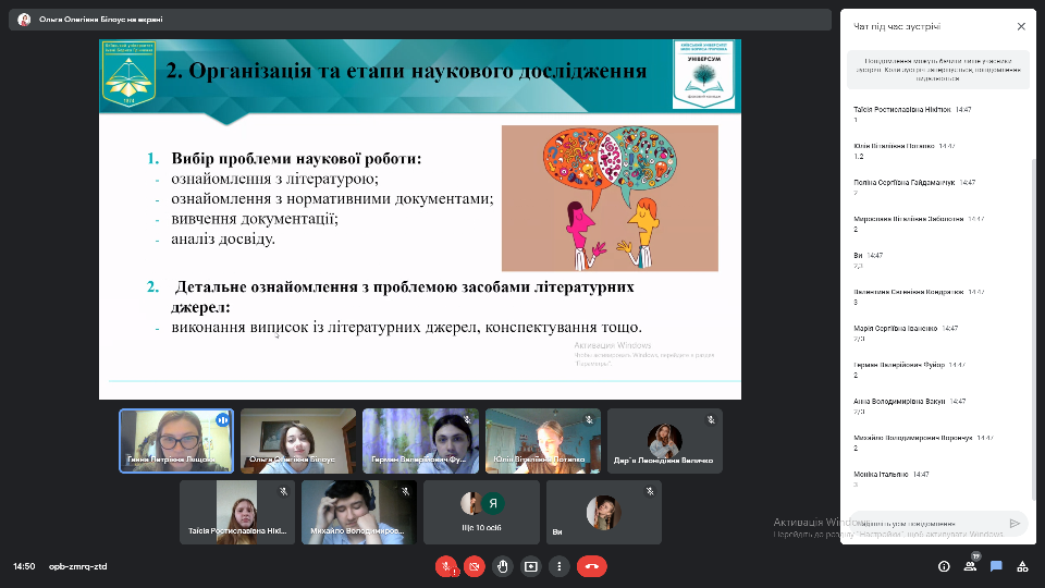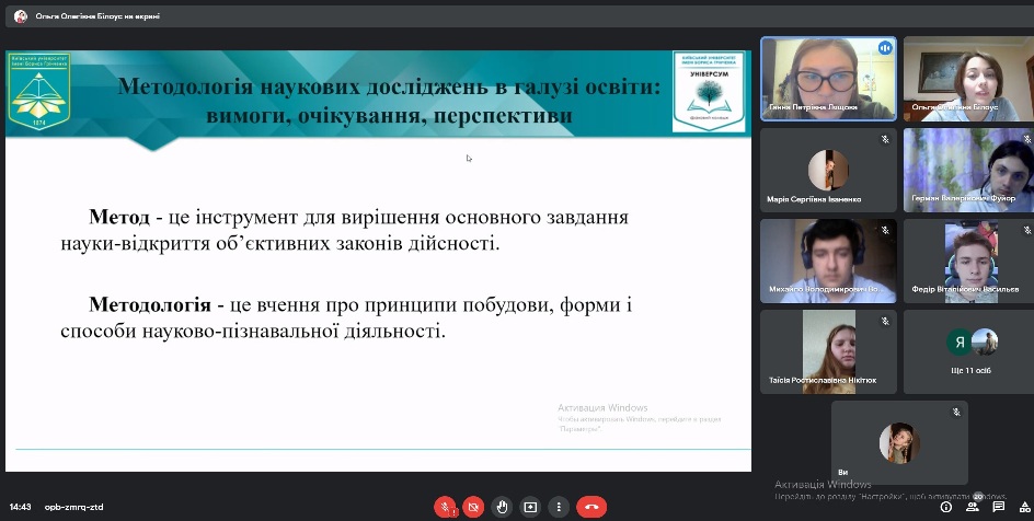 Засідання наукового гуртка «Консонанс» на тему: «Методологія наукових досліджень в галузі освіти: вимоги, очікування, перспективи»