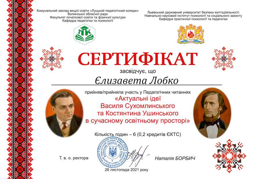 Участь членів Наукового товариства Фахового коледжу «Універсум» у педагогічних читаннях «Актуальні ідеї Василя Сухомлинського та Костянтина Ушинського в сучасному освітньому просторі»