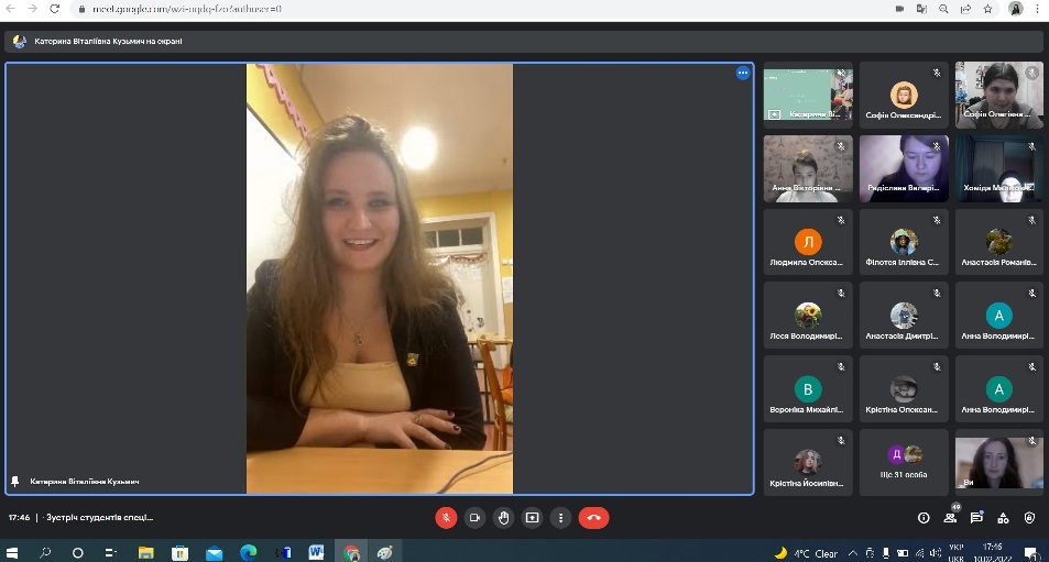 Онлайн-зустріч з членом Ради випускників Коледжу Кузьмич Катериною Віталіївною