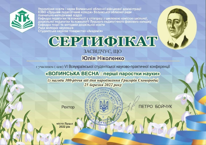Участь у VІ Всеукраїнській студентській науково-практичній конференції «Волинська весна: перші паростки науки»