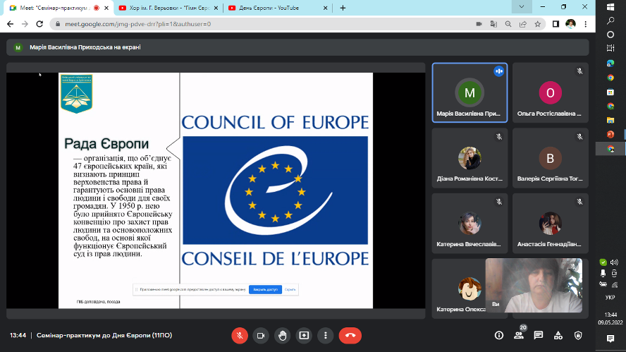 Семінар-практикум до Дня Європи на тему: "Україна- член європейського та світового співтовариства"