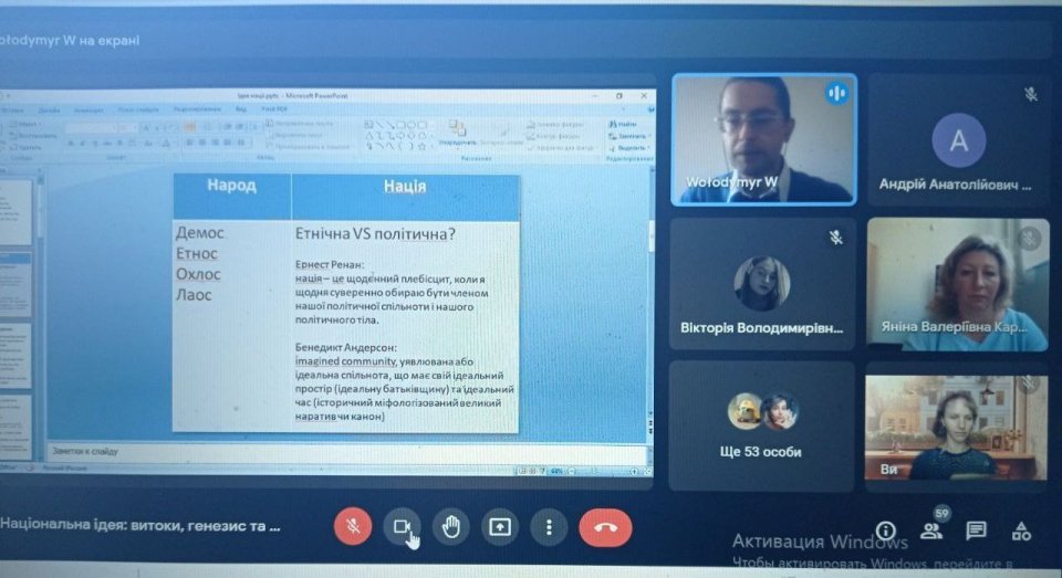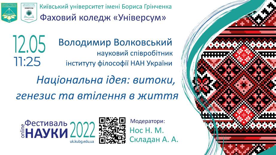 Зустріч з науковим співробітником Інституту філософії імені Г. С. Сковороди НАН України, кандидатом філософських наук Володимиром ВОЛКОВСЬКИМ на тему «Національна ідея: витоки, генезис та втілення в життя»