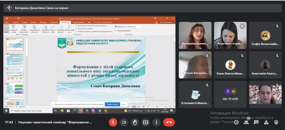 Науково-практичний семінар “Формування загальнолюдських цінностей у дітей старшого дошкільного віку у різних видах діяльності”