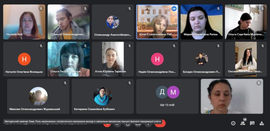 Методичний семінар на тему: «Роль національно-патріотичного виховання молоді в навчально-виховному процесі фахової передвищої освіти»