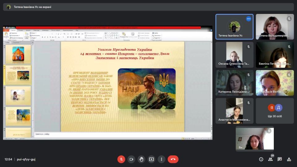 Виховна година «14 жовтня – свято Покрови, День українського козацтва і День захисників і захисниць України»