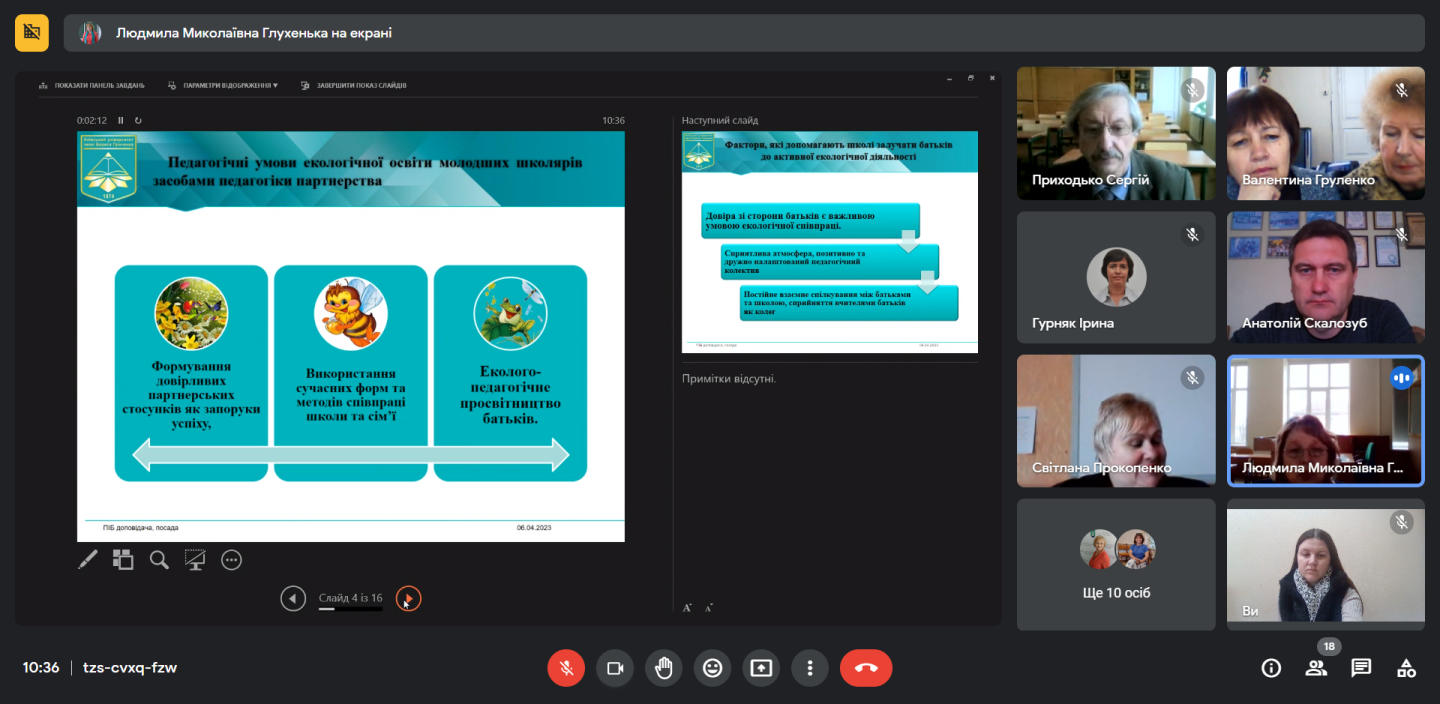 Участь у онлайн-семінар «Педагогіка партнерства як засіб екологічного виховання»