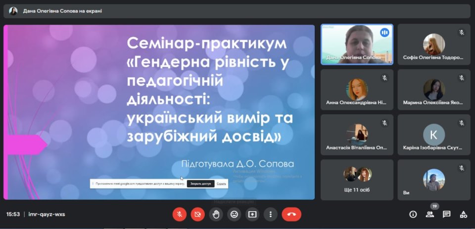Семінар-практикум «Гендерна рівність у педагогічній діяльності: український вимір та зарубіжний досвід»