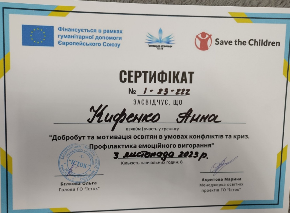 Тренінг "Добробут та мотивація освітян в умовах конфліктів та криз.Профілактика емоційного вигорання"