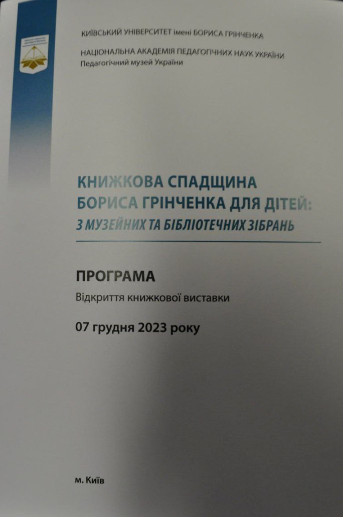 Відкриття книжкової виставки «Книжкова спадщина Бориса Грінченка для дітей: з музейних та бібліотечних зібрань» (до 160-річчя від дня народження педагога)