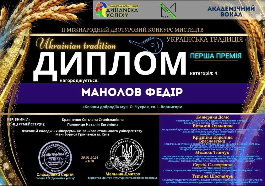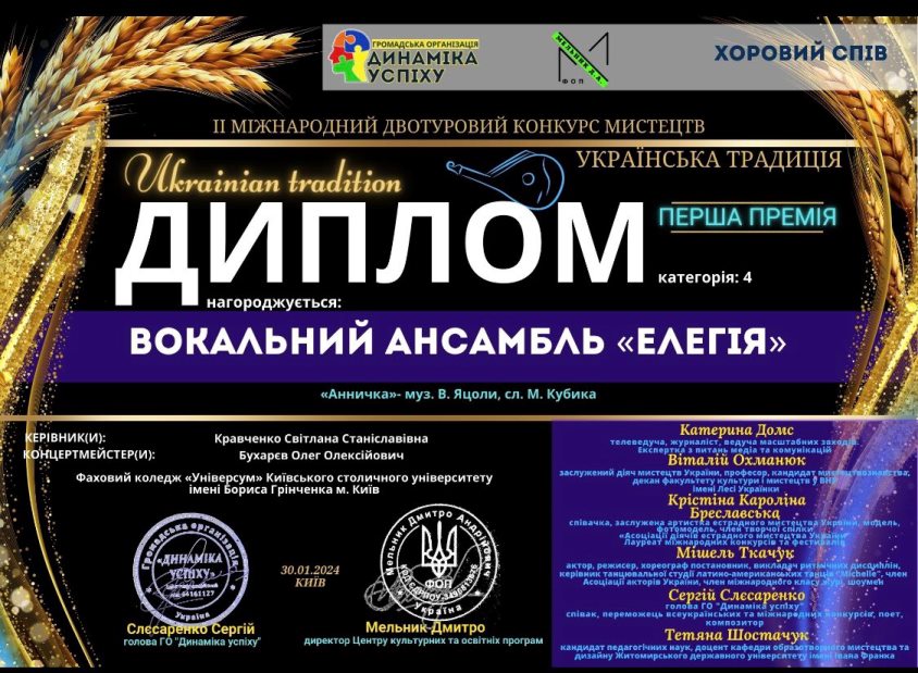 II Міжнародний двотуровий конкурс мистецтв «UKRAINIAN TRADITION»