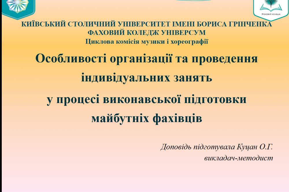 Методичний семінар «Особливості організації та проведення індивідуальних занять у процесі виконавської підготовки майбутніх фахівців»