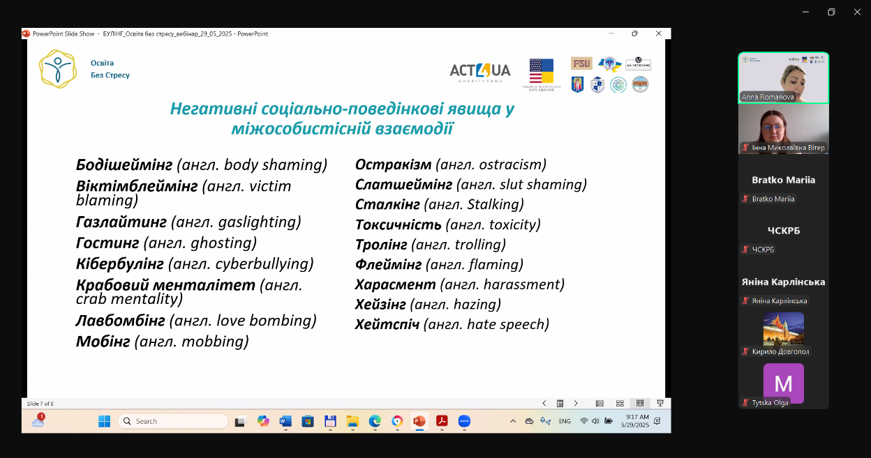 Участь у вебінарі від проєкту «Освіта без стресу» на тему «Булінг в освітніх середовищах: як протидіяти без агресії»