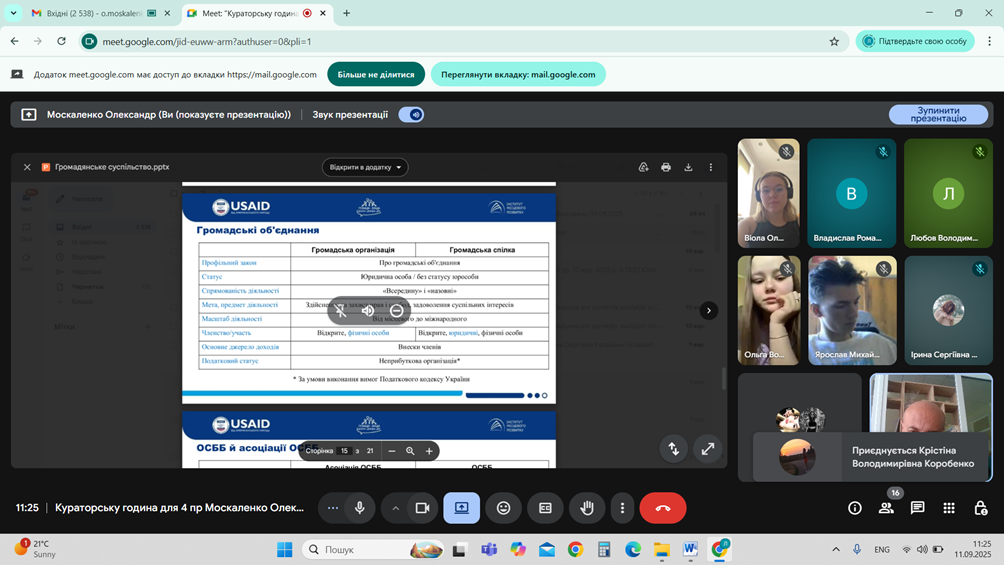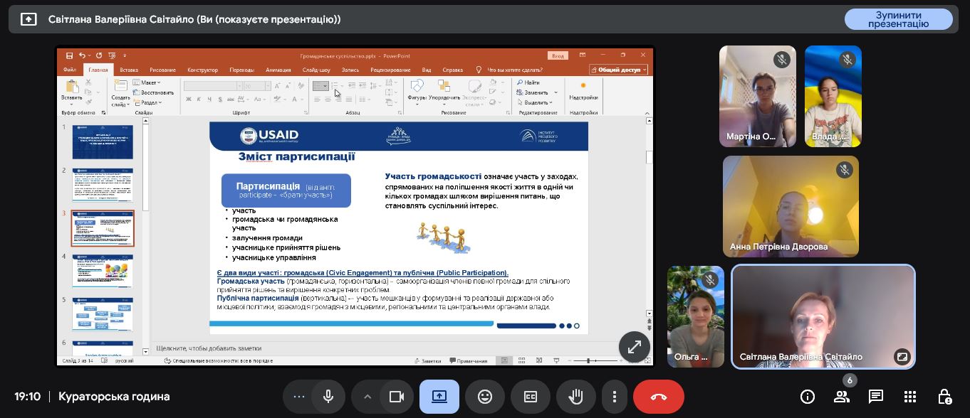 Кураторські години на тему "Громадянське суспільство в умовах війни"