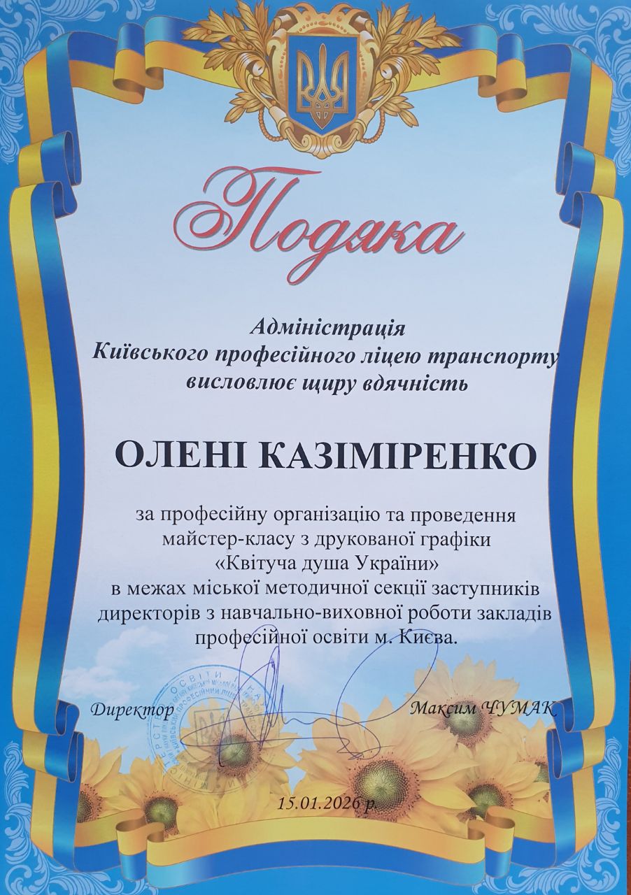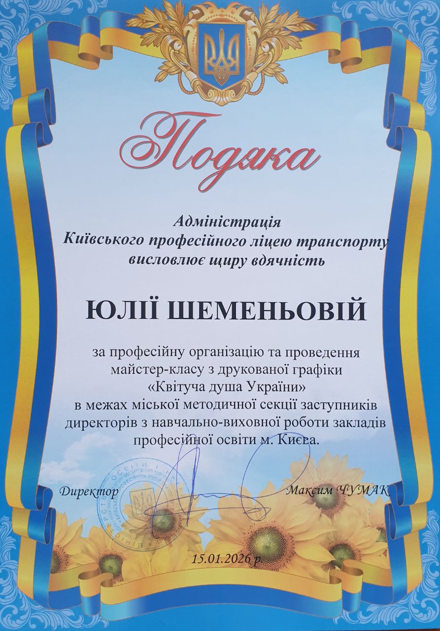 Майстер-клас з друкованої графіки "Квітуча душа України" в межах міської методичної секції заступників директорів з навчально-виховної роботи закладів професійної освіти м. Києва
