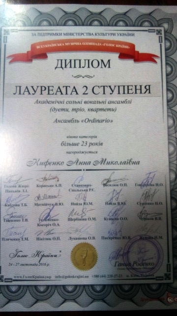 Вітаємо переможців Всеукраїнської музичної Олімпіади «Голос Країни»