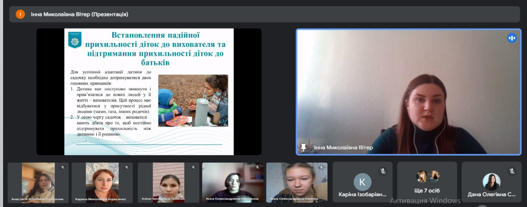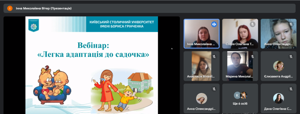 26 березня 2024 року у Фаховому коледжі "Універсум" в рамках соціального проєкту "Війна не відміняє дитинство" відбувся вебінар "Легка адаптація до садочку", де учасники заходу разом з практичним психологом Інною ВІТЕР проаналізували типи соціалізації дітей дошкільного віку у соціальному середовищі дитячого садочку.