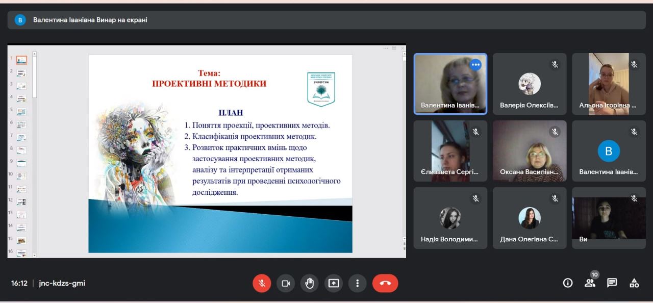 Відкрите заняття з навчальної дисципліни "Основи психодіагностики і корекції" на тему: "Проективні методики"