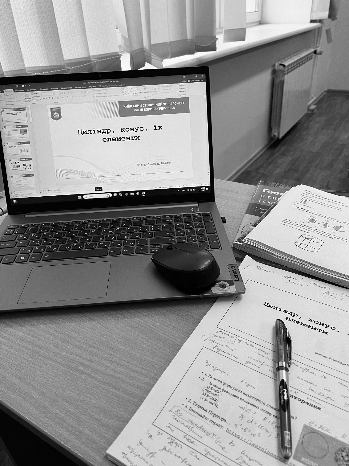 Разом зі студентами ознайомилися з поняттями циліндра, конуса, їх елементами та основними формулами. Розглянули різні типи задач, зокрема задачі до НМТ з теми.