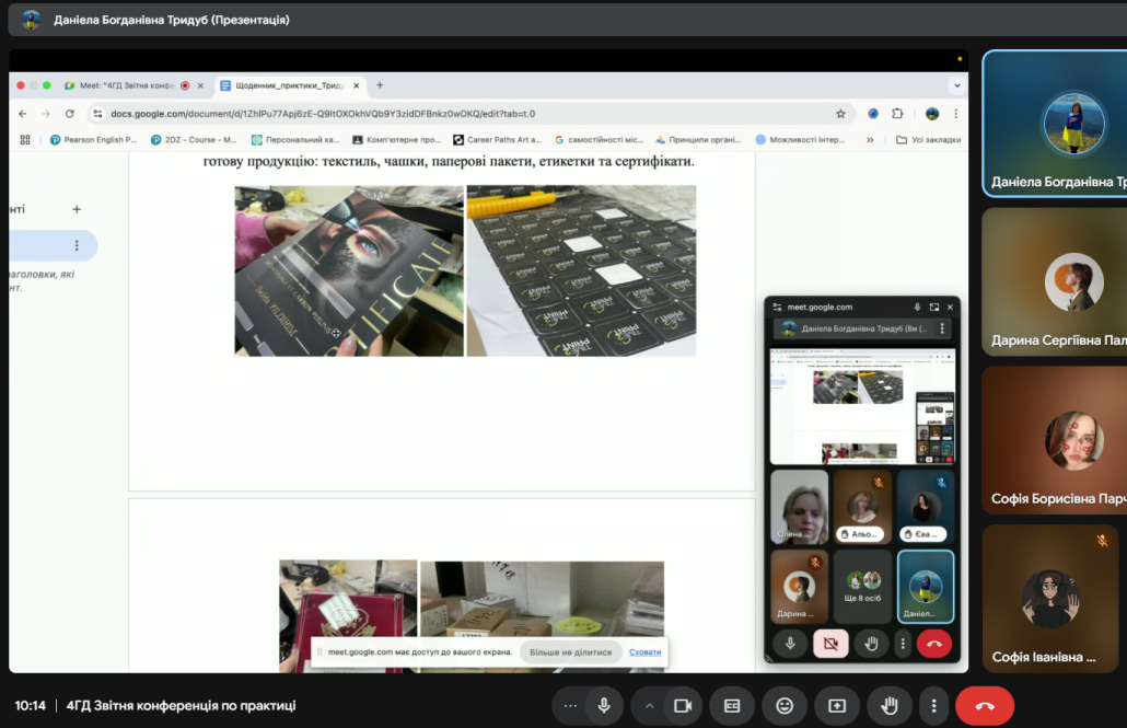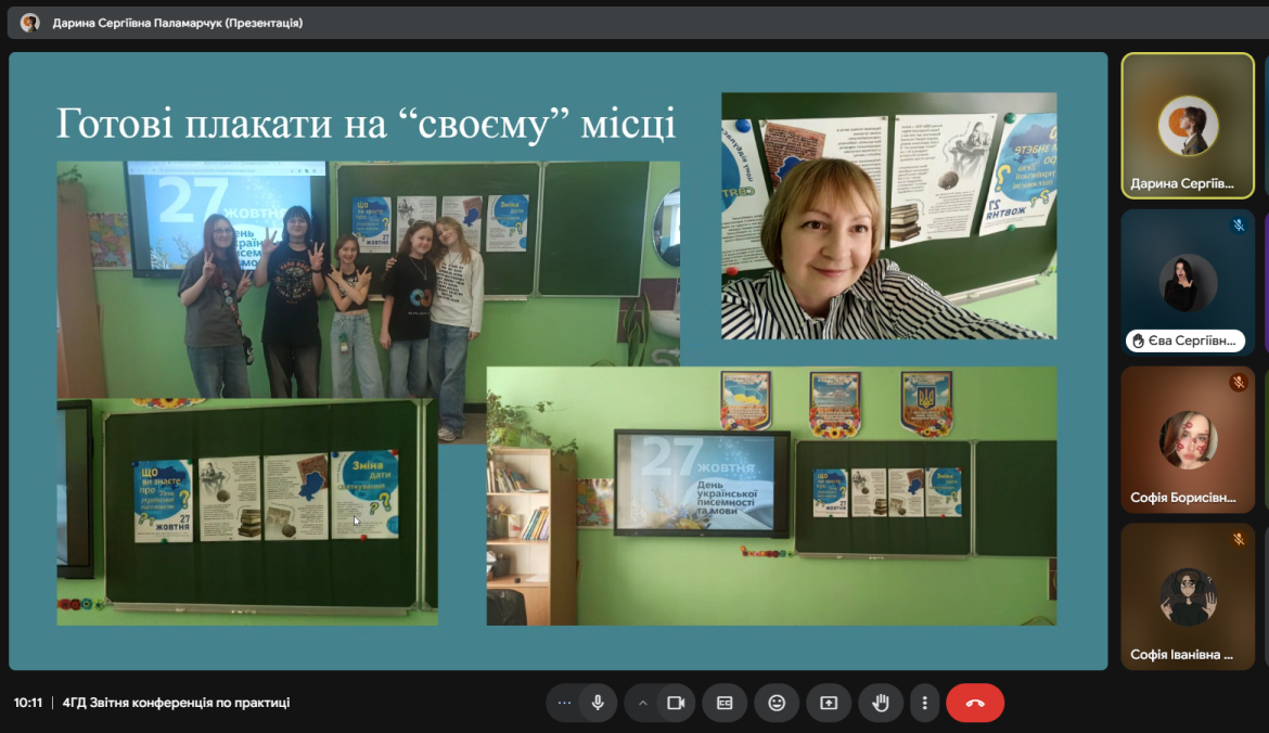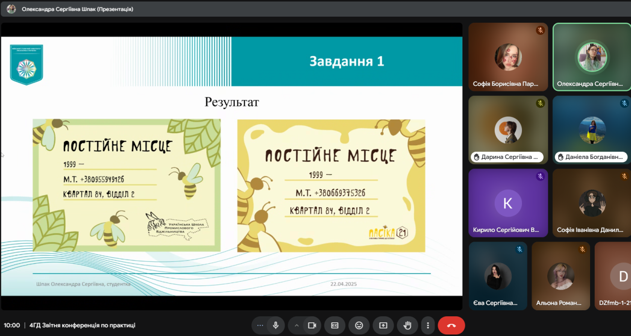 На звітній конференції студенти презентували свої роботи, виконані під час практики. Комісія відзначила роботи Бондаренко Катерини, Паламарчук Дарини, Тридуб Даніели та Шпак Олександри.