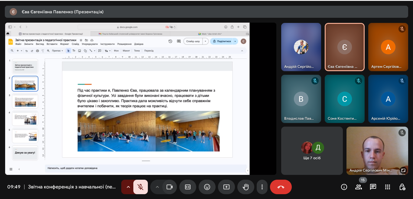 Під час звітної конференції студенти продемонстрували презентації та поділились своїми враженнями про практику. Успішно завершили практику на високий рівень такі студенти : Павленко Єва, Іванникова Інна, Лопата Тимофій, Семілетова Софія, Бойко Анастасія, Лещенко Євгеній, Ярмак Юліанна.