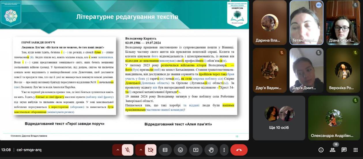 14 травня 2025 року відбулася звітна конференція з переддипломної практики групи ВСРфмб-1-21-4.0д спеціальності «Журналістика», яка тривала з 07.04.25 до 04.05.25. Переддипломна практика є важливою складовою навчального процесу, вона дала можливість майбутнім фахівцям закріпити здобуті знання на практиці та ознайомитися з реальними умовами роботи в медіа. Під час проходження практики студенти працювали у редакціях газет, онлайн-видань, телекомпаній. Вони мали змогу готувати інформаційні матеріали, брати інтерв’ю, писати репортажі та брати участь у редакційних нарадах. Практика сприяла формуванню професійних навичок, відповідальності та креативності. Після завершення практики відбувся захист звітів, де студенти поділилися своїми здобутками та досвідом. Комісія відзначила високий рівень підготовки та зацікавленість студентів у професійній діяльності. Практика стала важливим кроком до становлення кожного студента як журналіста. Вона також дала можливість налагодити зв’язки з майбутніми роботодавцями та отримати корисні поради від професіоналів галузі.