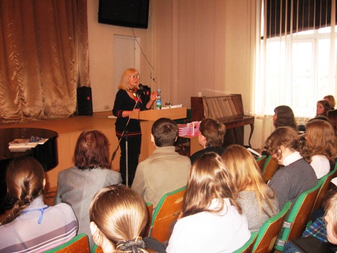 Зоя Олексіївна прочитала студентам твори із своїх збірок: «Рапсодія душі», «Напав сміх» та інших. Розповіла про свою творчу співпрацю із заслуженими та народними артистами України, серед них і викладач нашого університету Фермій Мустафаєв.
