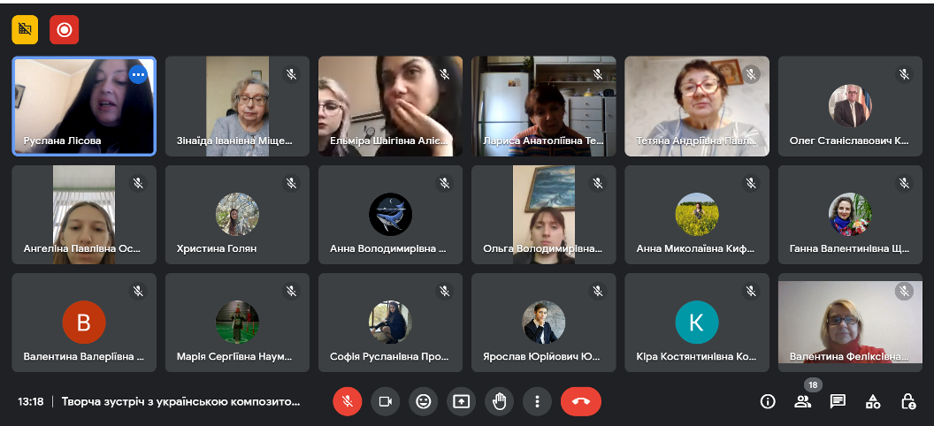 13.12.2023 року в межах Клубу «Людина професії» відбулася творча зустріч студентів спеціальності «Музичне мистецтво» з відомою українською композиторкою, членом музичної спілки імені Анатолія Авдієвського, членом Національної спілки кобзарів України, музичним редактором журналу «Музична школа» Русланою Лісовою.