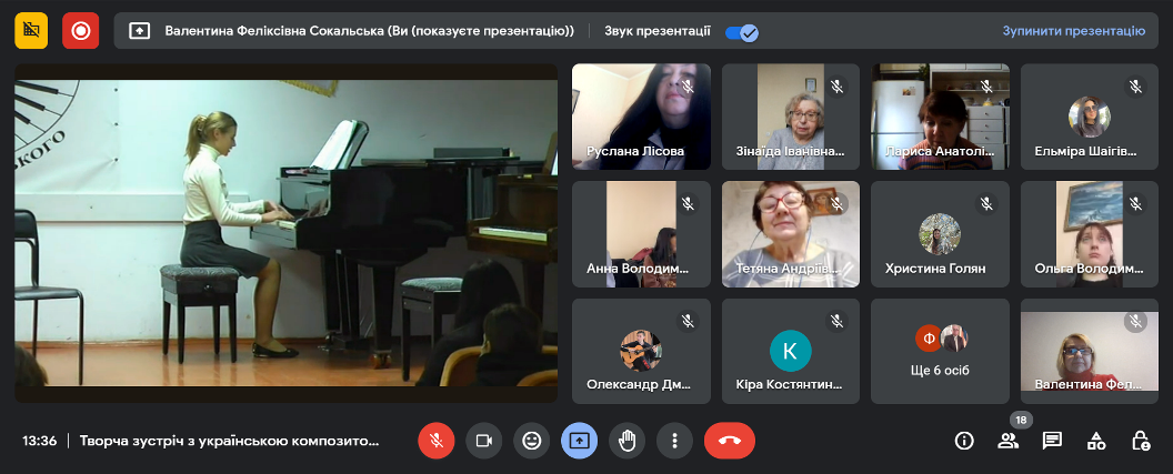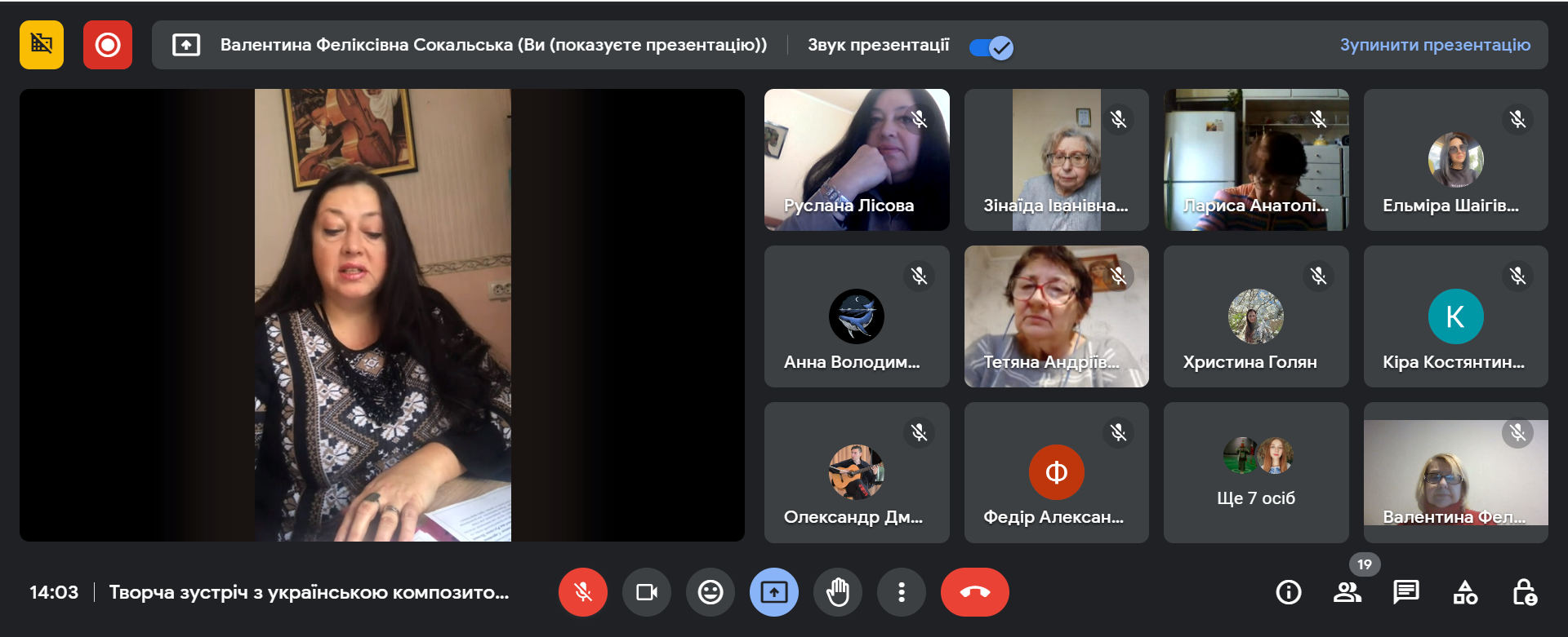 Композиторка розповіла присутнім про основні віхи творчого життя, ознайомила присутніх зі своїм авторським доробком, продемонструвала велику кількість музичних інструментальних творів, ансамблів, презентувала авторські музичні збірки.