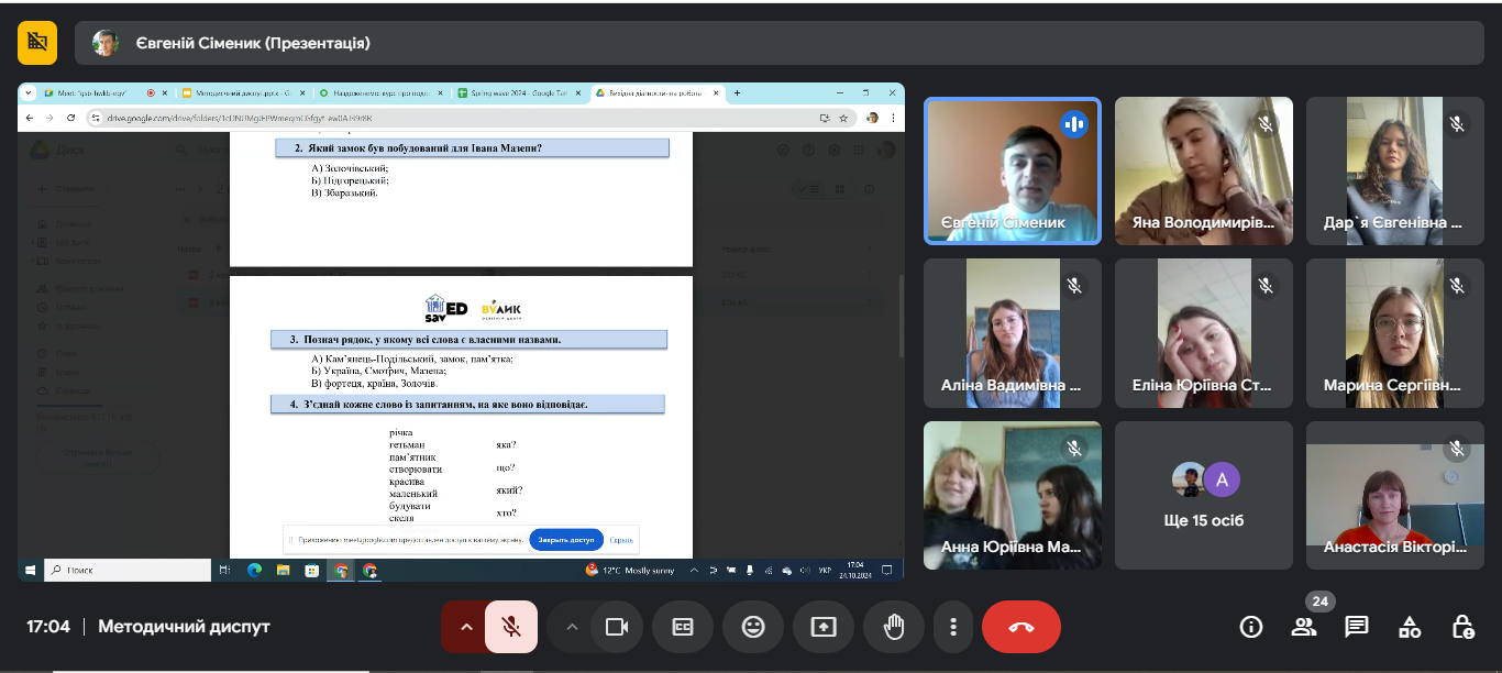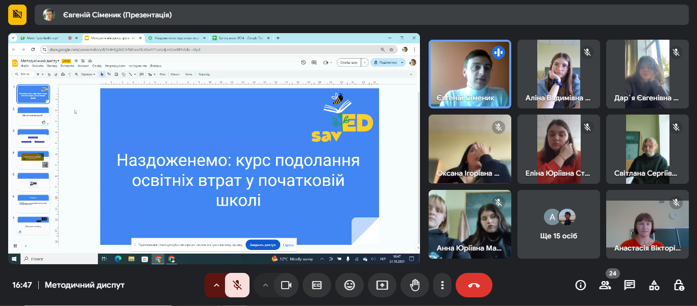 методичний диспут "Наздоженемо: курс про подолання освітніх втрат у початковій школі" за участі спікера Євгенія Сіменика, заступника директора з навчально-виховної роботи приватної організації (установи, закладу) "Приватний заклад загальної середньої освіти "Київський ліцей "Українська школа вільних наук".