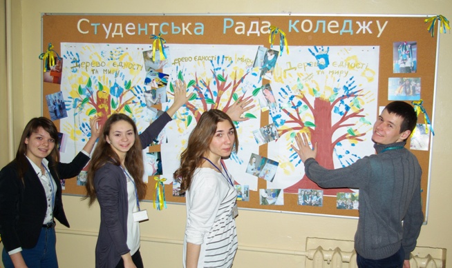Ранок 3 березня 2015 року в Університетському коледжі розпочався зі щирих посмішок і жовто-блакитних кольорів. Студенти та співробітники коледжу взяли участь у заході «Дерево єдності та миру», мета якого – сприяти згуртованості студентів і викладачів заради єдності всієї грінченківської родини та цілісності України.